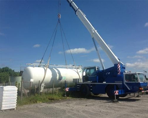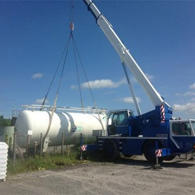 Transportation of fuel tanks is our business. No matter the size, number of walls and the thickness of the plate, we have the right equipment to lift, transport, offload and install (burry) it safely at a fraction of costs. We adhere to the most stringent state and federal safety guidelines at all times along the transportation chain.